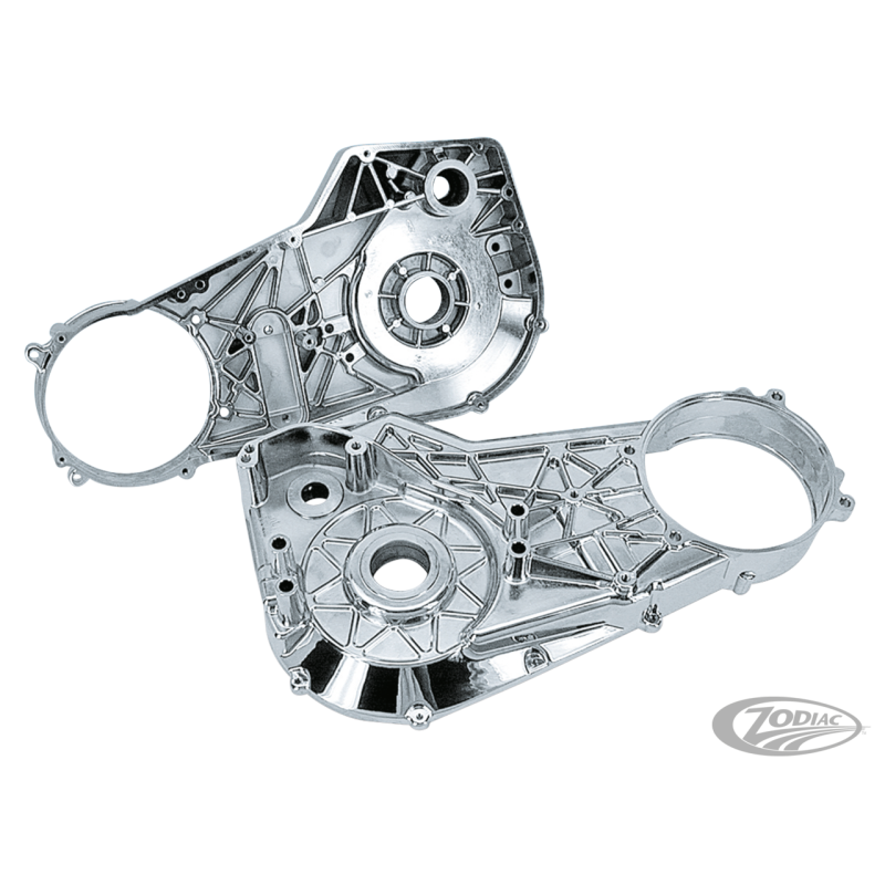 Ces carters primaires internes sont renforcés et ont une solidité supérieure à ceux d'origine, ils sont recommandés avec l'utilisation de gros moteurs. Les renforts préviennent les fissures fréquentes avec l'utilisation des gros moteurs et existent pour Softail de 1990-2006 avec une jolie finition chromée. Ces carters existent avec ou sans les joints, roulement et bagues déjà installés sur les carters, seules les rondelles freinées n'y sont pas et doivent toujours être commandées séparément. Encore plus joli si vous utilisez nos carters primaires extérieurs chromés ZPN210117 ou 210118.