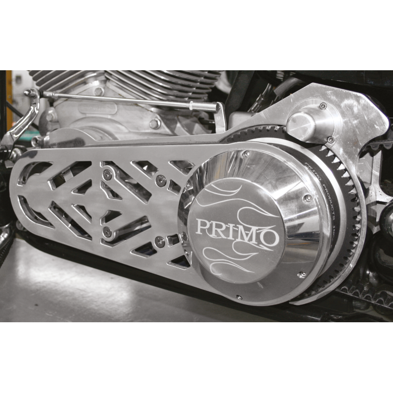 Le kit courroie Primo's Slimline offre une courroie 1 3/4" plus étroite. La courroie est au pas de 11mm, ce pas combiné au type de courroie "Dense Pack" Kevlar polychain a été testé pour supporter des puissances au delà de 150 chevaux. Le kit Slimline comporte une plaque moteur une seule pièce en aluminium et un carter extérieur en aluminium qui couvre complètement la courroie et les poulies, il combine les côtés esthétique et de sécurité. Le kit est livré avec courroie, poulies avant et arrière ainsi qu'un embrayage Pro-Clutch pour passer la puissance. Pour tous les 1990-1999 Evolution Softail et 2000-2006 Twin Cam Softail avec démarreur. Vous pouvez utiliser les déports de poulie des systèmes Brute IV en 3 1/2" de diamètre si besoin est.