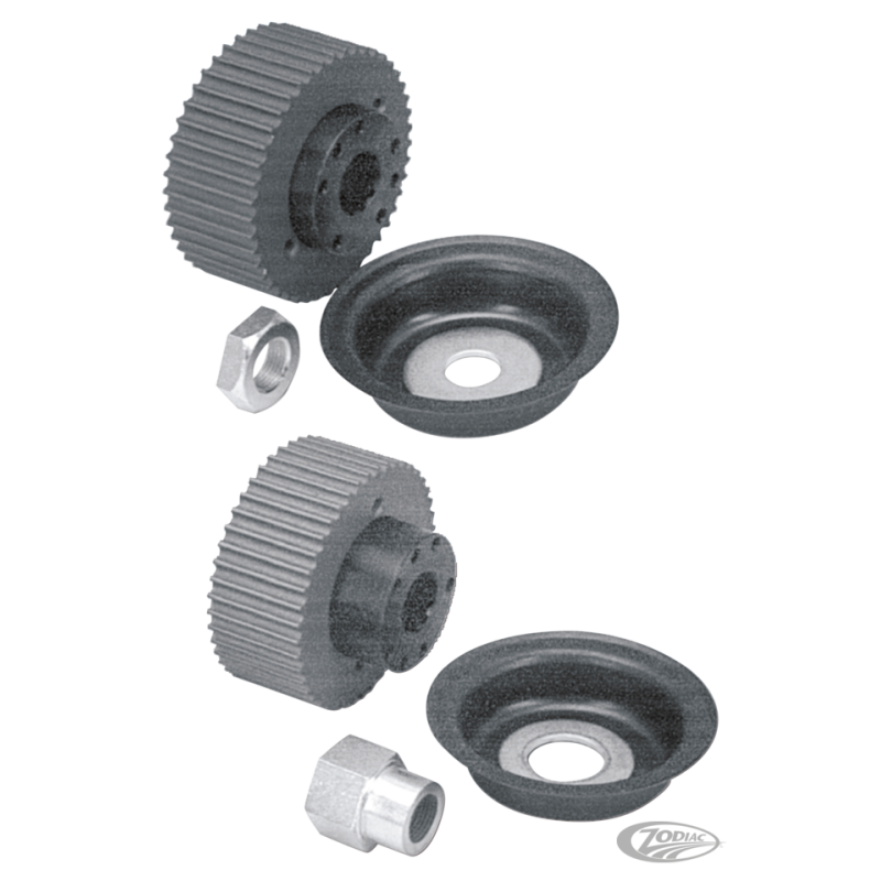 Ces poulies Primo déportées offrent la possibilité de monter de gros pneus à l'arrière ou pour toute construction custom. Les inserts sont conçus pour les 1 3/4" de large Primo Brute III sur Softail et Dyna.