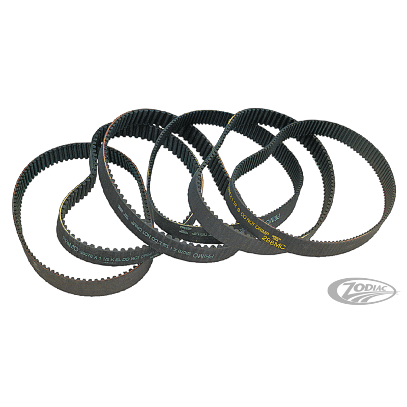 Primo offre deux types de courroie de remplacement. Les normales HTD qui est fournie d'origine par Primo. Mais aussi une Kevlar qui a une structure kevlar qui a une résistance exceptionelle. Ces courroies Kevlar sont recommandées pour tous les moteurs puissants ou de grosse cylindrée. Les courroies Primo Kevlar sont utilisées par Dragster de plus de 600 H.P, Ton Pels et beaucoup d'autre.