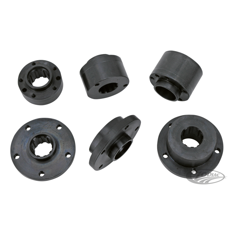 Ces déports de poulies avant Primo permettent au customiseur de déporter leur transmission sur la gauche pour le montage de grosses roues. Il existe deux différents types de déports, ceux avec insert de 2 1/2" de diamètre pour Brute III 1 3/4" et anciens brute Brute IV 3", les autres font 3 1/2" de diamètre et se montent sur les derniers Brute IV 3". Tous les inserts sont livrés avec les 5 vis fraisées et pions de centrage, vous aurez aussi besoin d'un guide extérieur ainsi que l'écrou et la rondelle correspondants.