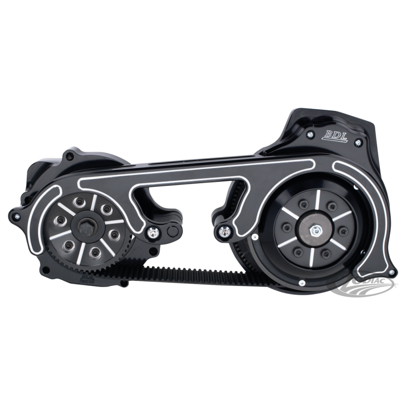 Ce kit de courroie primaire est livré avec une courrie BDL renforcée de 2" qui a été développé spécifiquement pour gérer le couple élevé et la puissance produite par les gros moteurs V-Twin d'aujourd'hui. De plus, le système intègre une plaque moteur usinée d'une pièce et une protection latérale au look unique ainsi que le traditionnel carter de démarreur BDL. Ils disposent également d'un pare-courroie noir qui est entre la plaque moteur et la protection latérale extérieure. Les kits comprennent la toute dernière technologie BDL avec embrayage sur roulement à billes qui est propre à BDL. Le design avancé offre une surface de contact de 30% supérieure, un effort au levier réduit, une transition plus douce, un fonctionnement super silencieux et un embrayage sans faille.