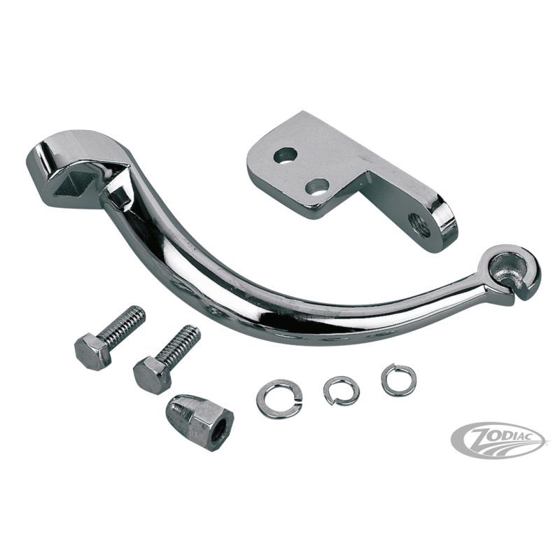 Une autre exclusivité de Zodiac. Ce kit remplace les 4 bras de débrayage OEM séparés utilisés depuis 1980. Remplace le bras de débrayage et l'étrier de câble. Comporte le bras de débrayage forgé et l'étrier de câble coulé sous pression. Le kit comprend écrou borgne, le matériel de montage et une joli finition chromée (OEM 37085-80, 37094-84, 37096-83 et 37096-85).