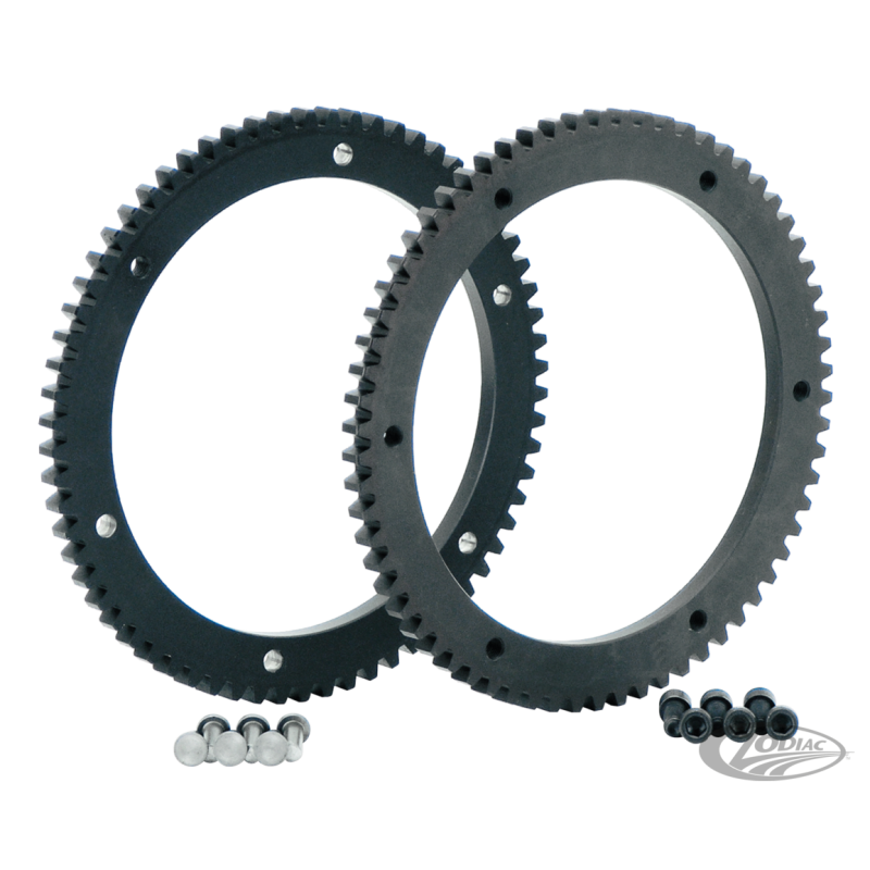 Les couronnes de démarreur s'usent vite ou cassent surtout avec les gros moteurs. Ces couronnes n'existent pas à la "Factory". En tant que fournisseur de pièces de performance nous nous devions de proposer ces couronnes. Ceci vous évitera de remplacer inutilement la cloche d'embrayage au complet quand vous avez une dent de cassée sur votre couronne. Les rivets ou vis nécessaires sont fournis. Ces couronnes sont fabriquées avec des matériaux de haute qualité et sont disponible en remplacement de l'origine ou encore en version "Retro-Fit" qui font 66 dents (version la plus solide) mais qui doivent être utilisées avec le pignon d'entrainement spécial ZPN290546.