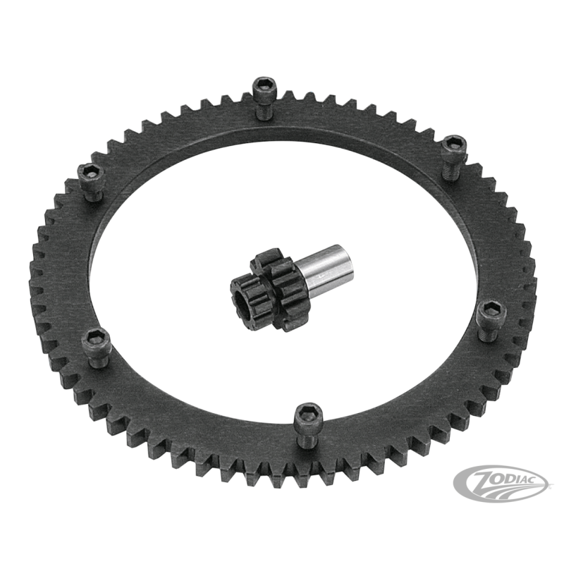 Ce retour à l'ancien montage de pignon sur les derniers démarreurs est unique et conçu pour se monter sur les extensions de démarreurs de 1994-2006 seulement, cela permet d'utiliser la couronne de démarrage 66 dents des modèles de 1990-1993 (ZPN 232228) qui est bien plus solide. Un must pour tout gros moteur car ceux-ci augmentent les contraintes sur ces organes critiques, particulièrement quand le moteur vous envoie un retour de derrière les fagots. Pignon et couronne doivent être commandés séparément.