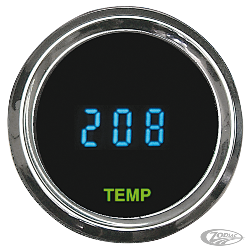 Pour ceux qui se construisent leur custom et qui veulent plus que le désormais banal mini-compteur, Dakota Digital a développé toute une série d'instrumentation unique et très complète d'instruments de mesure digitaux. Ces instruments digitaux sont: compteur, compte-tours qui font 3 3/8" (86mm) de diamètre, pression d'huile, température d'huile, voltage et température de culasse qui eux font 2 1/16" (52mm) de diamètre pour la plupart des fixations aftermarket. Les capteurs doivent être commandés séparément. Installation sur 2002 au présent V-Rod, Sportster de 2004 à 2013, 2004 à 2010 Softail, 2004-2011 Dyna et 2004 à 2013 Touring nécessite l'achat séparé 744267 qui est un boîtier Break-Out de la J-1850 Databus. Ne convient pas pour les modèles plus récents avec le système CAN-Bus (HD-Link).