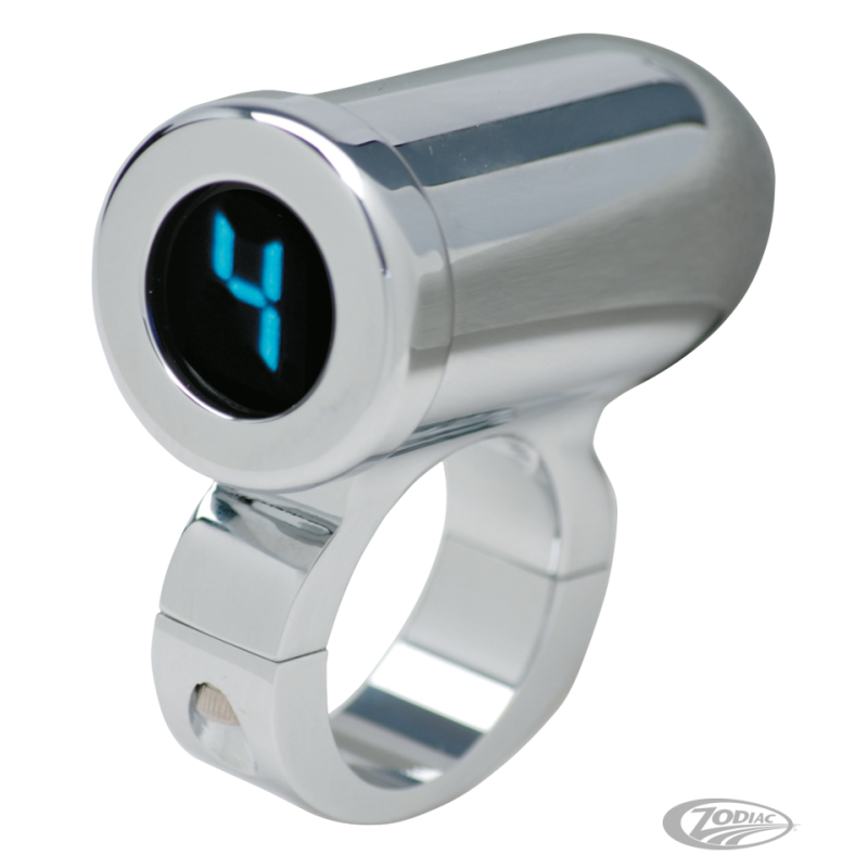 Le Dakota Digital's PGR-1000 s'auto-programme. Branchez le simplement et roulez en passant toutes le vitesses et c'est fait. Ils peuvent être utilisés sur n'importe quelle moto équippée en 12 Volt avec capteur de vitesse électronique. Comprend la lecture du rapport engagé de 1 à 7, indicateur de point mort, luminosité automatique, carter en aluminum chromé et usiné de 1 1/4" (32mm) de diamètre et fixations de montage. Disponible avec fixations de guidon en 1", 1 1/4" et 1 1/2" ou montage affleurant pour être installé dans un carénage ou sur une console.