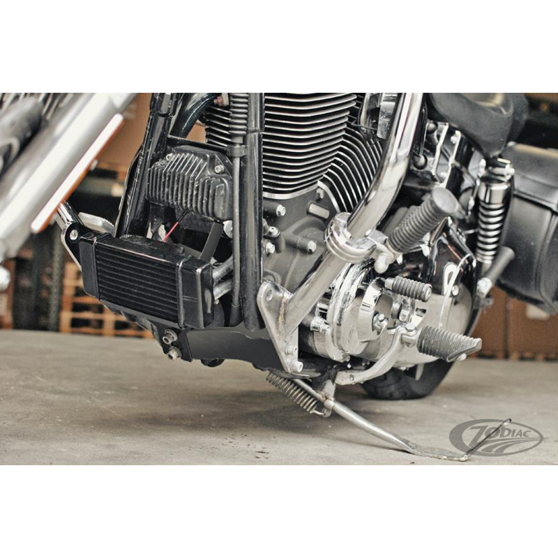 Le ridiateur Jagg 10-lignes est un kit radiateur d'huile avec ventilateur intégré conçu pour effectuer à pleine vitesse ou faible, ainsi que dans stop-and-go des bouchons. Le kit comprend la refroidisseur d'huile, un ventilateur, le tuyau d'huile, le matériel de montage, interrupteur automatique du ventilateur thermique et faisceau de câblage pour installation simple. Les kits pour Dyna ont un adaptateur de filtre. Quand vous voulez installer un radiateur d'huile ventilé sur un Touring vous devez commander ZPN234509 écrou adaptateur de filtre à huile ainsi que l'adaptateur ZPN740085 huile de filtre. Le ventilateur s'allume automatiquement vers 210°F (99°C). Le ventilateur aspire de 150cfm (71 litres par minute) à travers le radiateur et la technologie HyperFlow assure un débit inégalé et le rejet de la chaleur.