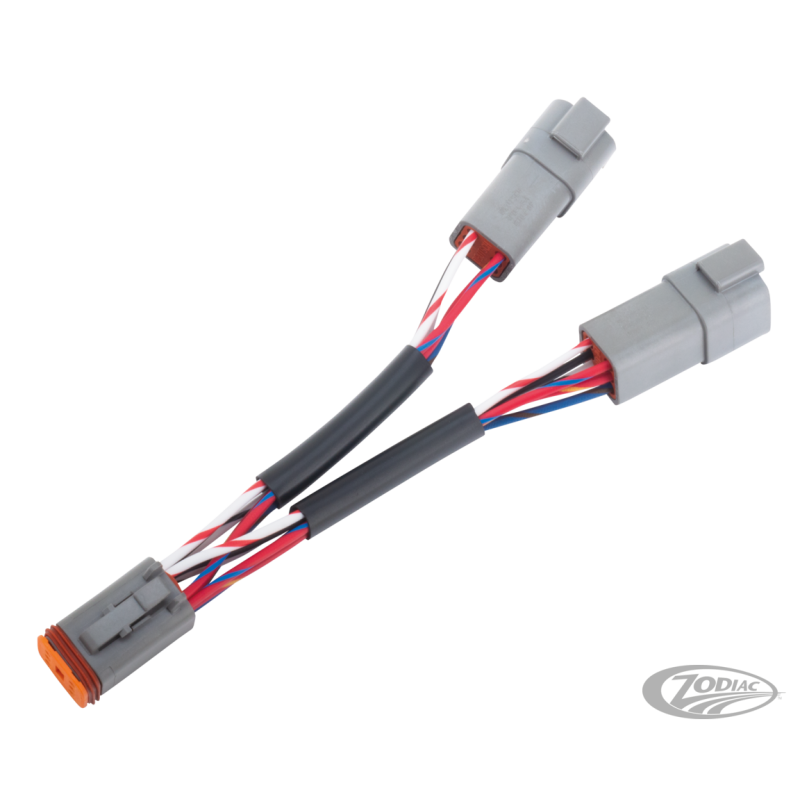 Connexion d'alimentation électrique pour la navigation, l'audio, les poignées chauffantes ou les ports de charge. Fournit une alimentation 12 volts sans interférence du CAN bus. Divise le connecteur d'accessoires d'origine en deux ports sans fusible. Pour tous les 2017 au présent Touring, tous les 2017 au présent Trike et tous les 2018 au présent Softail.