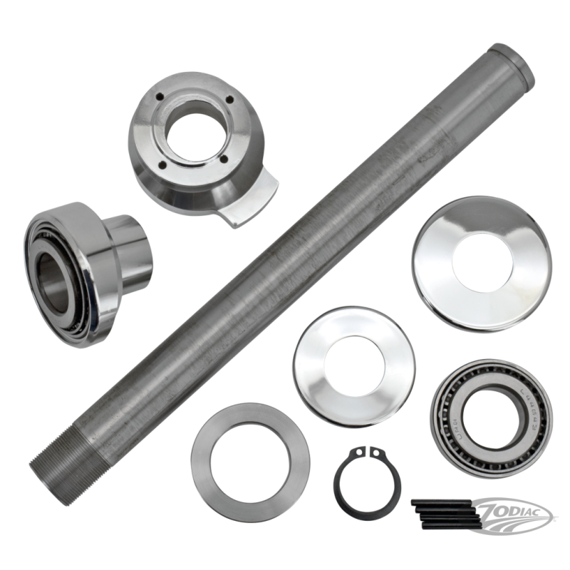 Pour cadres 1987-2017 Big Twin sauf 2014 et après Touring. Comprend les coupelles de cadre chromes, roulements de direction , nécessite un axe de colonne rallongé., Angle de 7 degrés en plus