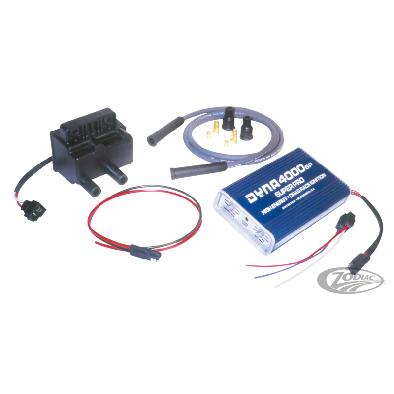Dynatek a une longue expérience dans la construction des allumages. Dès le milieu des années 70 quand tout le monde pensait encore rupteurs et condensateurs ils fabriquaient déjà des allumages électroniques fiables pour Harley-Davidson. Il y a plusieurs années ils ont développé un allumage élec-tronique spécialement concu pour répondre aux besoins des Dragsters. Ils ont développé au fil des années leur allumage pour en arriver à cette ultime version, le 4000 Superpro. Ce Dyna 4000 Superpro est un allumage haute énergie qui répond aux besoins des coureurs Dragster professionels. Il a l'avantage d'avoir une étincelle longue durée grâce au système à induction mais aussi une grande capacité à haut régime. Des plateaux capteurs spéciaux pour dual ou single fire existent. Cet allumage a également beaucoup d'autres caractéristiques qui intéressent aussi bien ceux qui utilisent l'essence que le Nitro.