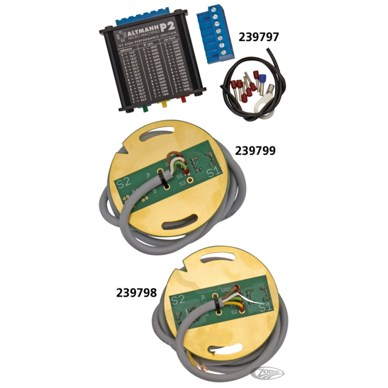 Système d'allumage entièrement réglable avec processeur 32 bits. Possède 256 courbes d'avance sélectionnables et 16 limites de régime différentes. Lorsque vous avez déjà un capteur à cames avec un seul capteur, cet allumage fonctionnera en mode Dual Fire avec une bobine Dual Fire. Lorsque votre capteur de came a deux capteurs, l'allumage fonctionnera en single fire. Les plateaux capteurs Single Fire et Dual Fire sont également disponibles. Pour Shovelhead, Evolution Big Twin, Evolution Sportster jusqu'en 2003, Buell jusqu'à 2007. Notez que le passage de Dual Fire à Single Fire ou vice versa nécessite un type de bobine correspondant.