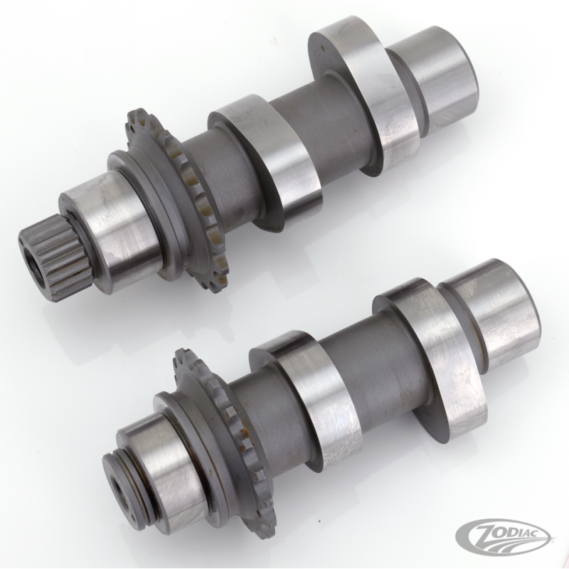 Depuis que le moteur Twin Cam est sorti il est apparu qu'il a un potentiel évident pour plus de performances. Andrews a concu et développé de nouvelles cames très performantes. Le Twin Cam a une courbe de couple plus étendue que les anciens moteurs. Toutes ces nouvelles cames andrews sont concues pour être utilisées avec poussoirs hydraulique stock et les tiges de culbuteurs Andrews EZ-Install (alu ou chrome moly). Un pignon d'entrainement 34 dents traité existe également pour les Twin Cam. Ces pignons sont fortement recommandés dans un moteur stock et obligatoires avec une came Andrews. Ce pignon n'est pas livré avec les cames et doit être commandé séparément. Les modèles 1999 et 2000 ont un pignon de came différemment fixé, c'est une clavette sur les modèles 1999 et des canelures sur les modèles 2000 et après. Le pignon et la clavette à large portée doivent être utilisés sur TOUS les modèles 1999. Prendre la version canelée pour les modèles 2000 et après. Les cames Andrews existent pour tous les Twin Cam. La version "Silent Chain" est pour les 1999-2006 Touring, 2000-2006 Softail et 1999-2005 Dyna, "Roller Chain" pour 2007-2016 Touring, 2009-2016 Trike, 2007-2017 Softail et 2006-2017 Dyna.