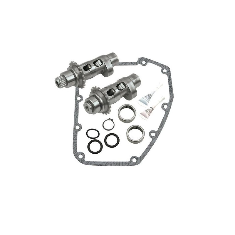 Les kits S&S à chaîne d'arbre à cames comprennent les cames avant et arrière, le joint du couvercle, roulements, circlips, o-ring, frein filet et les instructions.