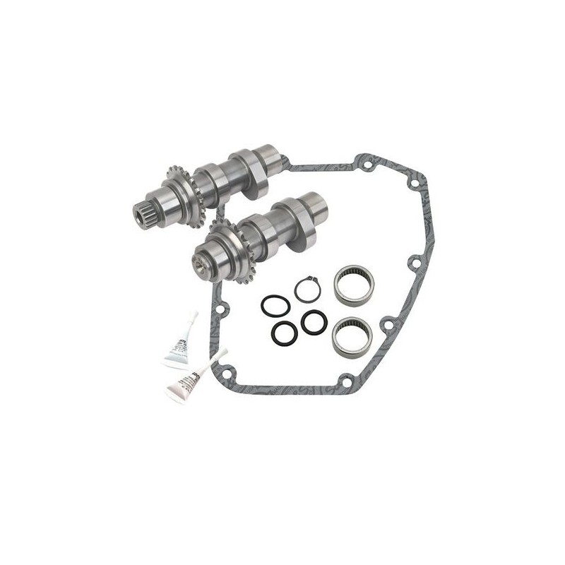 Les kits S&S à chaîne d'arbre à cames comprennent les cames avant et arrière, le joint du couvercle, roulements, circlips, o-ring, frein filet et les instructions.