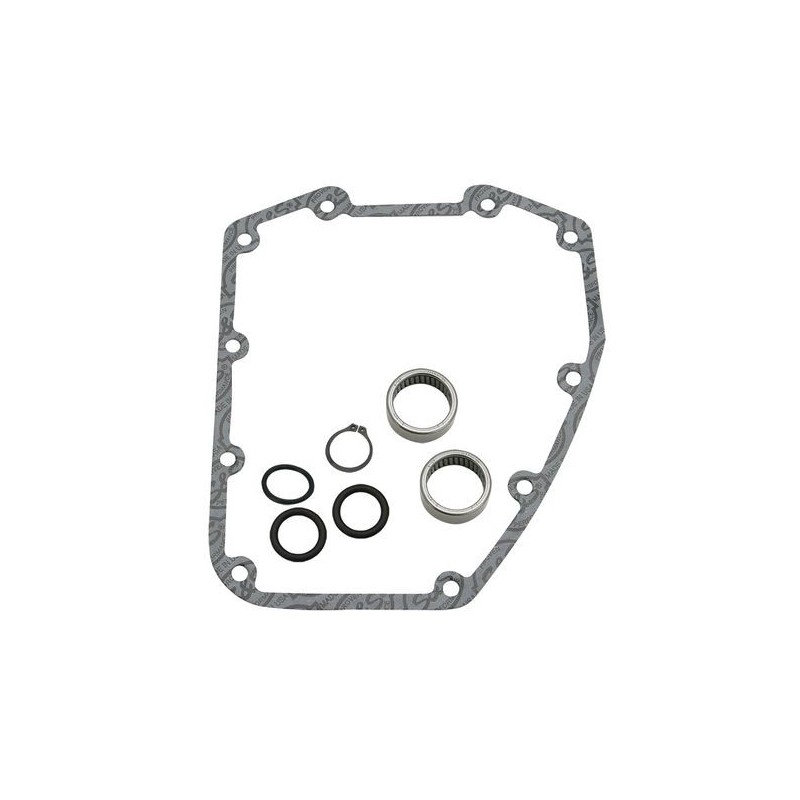 Les kits S&S à chaîne d'arbre à cames comprennent les cames avant et arrière, le joint du couvercle, roulements, circlips, o-ring, frein filet et les instructions.