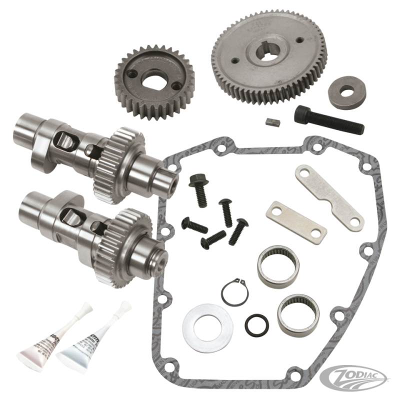 Les kits S&S à chaîne d'arbre à cames comprennent tous les pignons, les cames avant et arrière, le joint du couvercle, roulements, circlips, o-ring, frein filet et les instructions. Pour ceux qui ont déjà une distribution par pignons et qui voulent juste changer pour des cames Easy Start et/ou de diagramme nous avons aussi les cames seules.