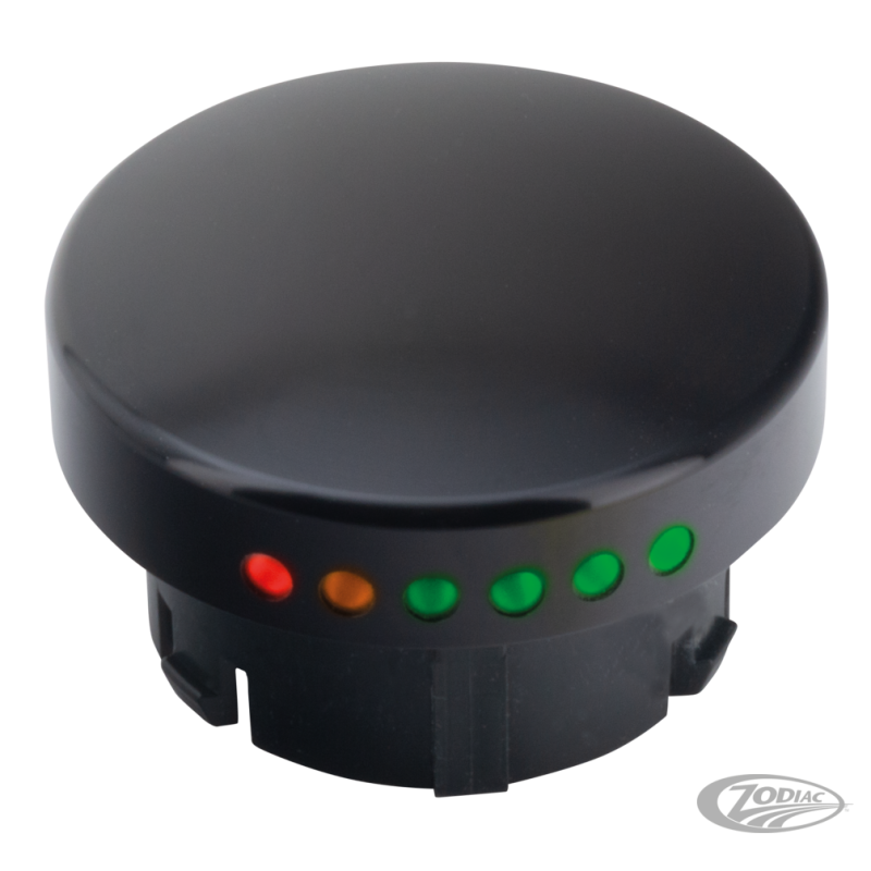 Jauges d’essence à LED qui remplacent celle d'origine sur le côté gauche du réservoir sur Dyna 1996-2017, Softail 1996-2017, FLHR & FLHRC Road King 1996-2017 et FLRT Freewheeler 2015-2017, Noir lisse