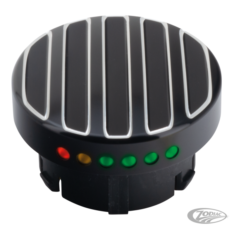 Jauges d’essence à LED qui remplacent celle d'origine sur le côté gauche du réservoir sur Dyna 1996-2017, Softail 1996-2017, FLHR & FLHRC Road King 1996-2017 et FLRT Freewheeler 2015-2017, Noir rainuré alu