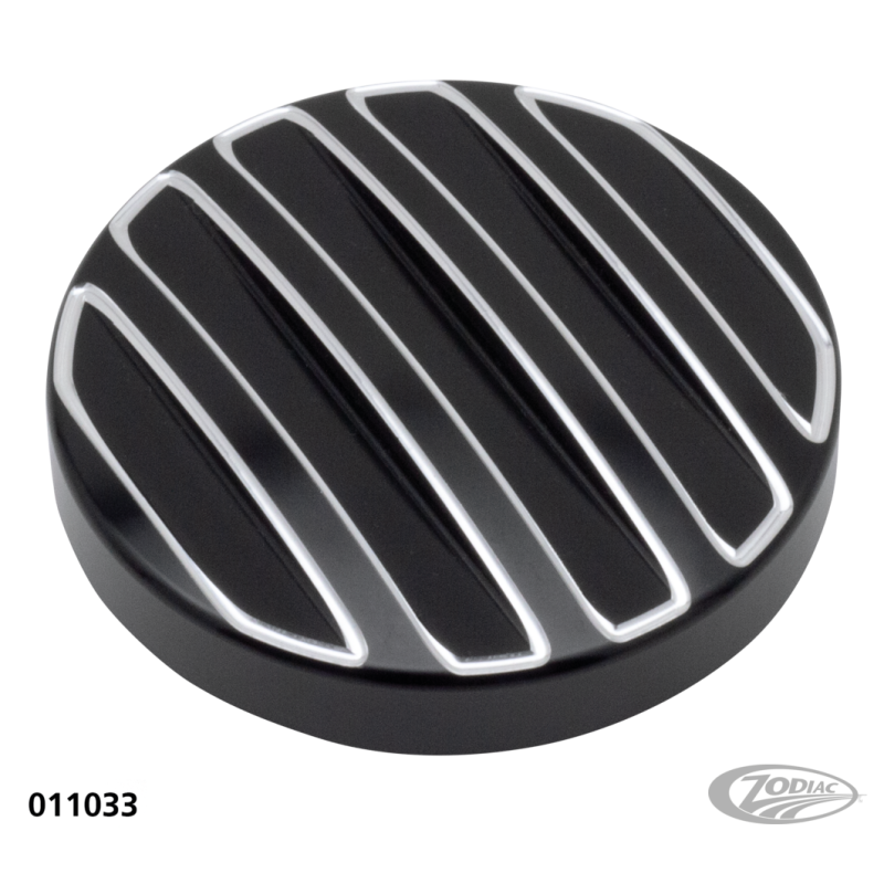 Bouchons factices avec patin de tension pour remplacer le bouchon décoratif d'origine côté gauche du réservoir d'essence 2018 au présent Softail (sauf FXBB Street Bob, FXBR & FXBRS Breakout, FXDR et FXFB & FXFBS Fat Bob), Noir rainuré alu