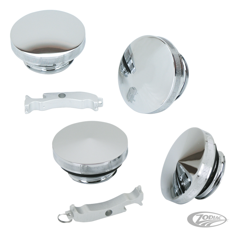 Ces bouchons de réservoir ont un système unique de cliquet pour éviter de trop les serrer et sont livrés complets avec leur protection de peinture de réservoir ainsi qu'un outil de verrouillage avec porte-clef. Le bouchon droit est monté avec un clapet homologué EPA qui peut être démonté pour être entretenu ou toute autre application. Usinés dans un bloc d'aluminium avec une finition chromée ces bouchons "Essential" iront sur tous les réservoirs avec bouchon à vis de 1982-2017 ainsi que tuos les réservoirs Zodiac avec bouchon à vis. Disponibles en jeu gauche et droit ainsi qu'à l'unité pour les réservoirs à un seul bouchon comme ceux des Sportsters. Style en pointe ou en dôme.