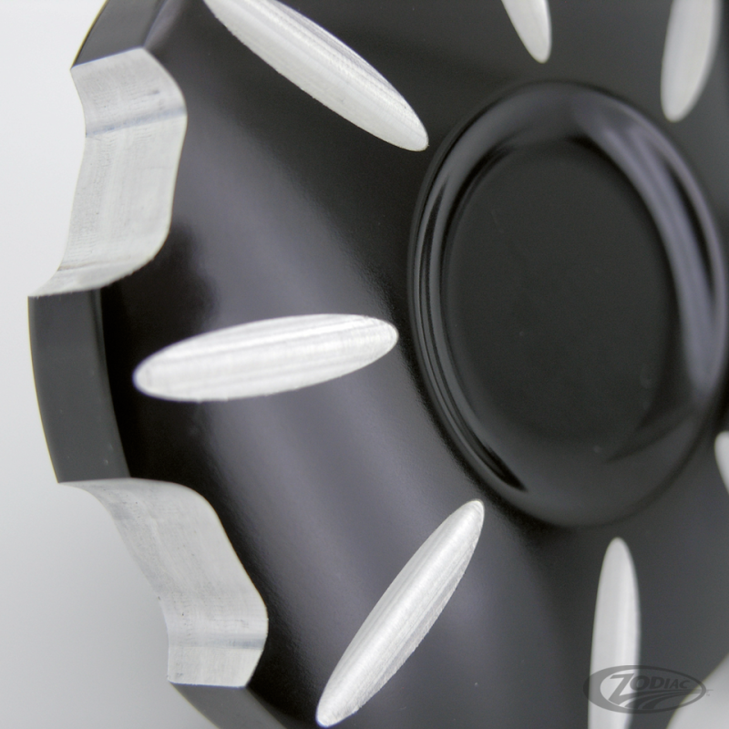 Bouchons usinés à vis en aluminium avec cinq options de couleurs différentes. Vendu par lots de gauche et droit pour tous les Big Twin ainsi que la plupart des réservoirs avec bouchons à vis. Aussi disponible en un bouchon ventilé pour les Sportster. Stealth est une étonnante finition qui combine deux tons de brillant et de mat enembles.