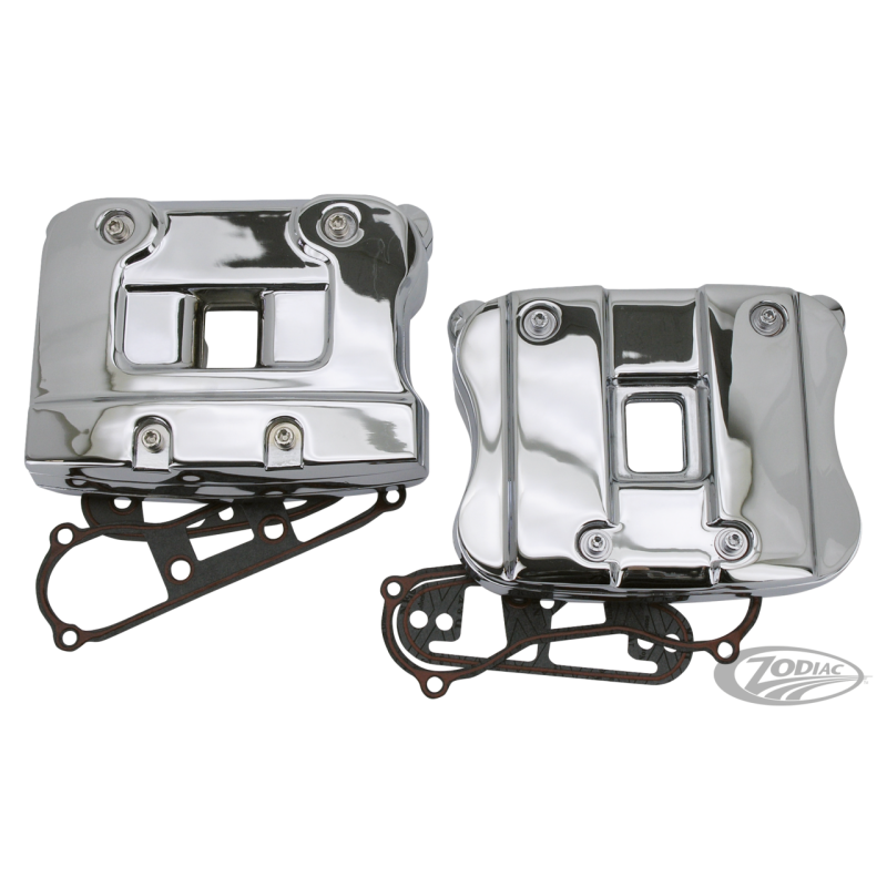 Kits de caches-culbuteurs de trois pièces chromés pour les moteurs Evolution. Ces caches-culbuteurs précisément coulés sous pression sont polis chromés et individuellement inspectés. Les kits sont disponibles pour les modèles de Sportster de 1991-2003 et les Big Twin de 1984-1999 et apportent les looks des Customs à prix abordable. Les cachesculbuteurs sont vendus en kit pour un cylindre (chaque moteur exige deux kits) et tous les joints d'étanchéiténécessaires sont inclus. Toutes les pièces sont séparément disponibles.