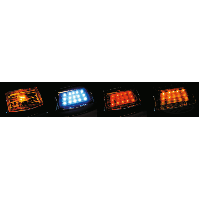 Des feux pour les garde-boue mais avec un petit plus. Là ou HD installe juste une ampoule classique avec une lentille orange sur l'avant ou une ampoule classique et lentille rouge sur l'arrière, Zodiac propose diverses couleurs avec les ampoules classiques 12 volts 10 watts ou des LEDs brillantes. En dehors de leur durée de vie et une apparence différente, l'éclairage LED consomme moins qu'une ampoule traditionnelle, ce qui les rend idéales pour les motos équipées avec des tonnes de consommateurs électriques comme des éclairages auxiliaires, radio, CB et ainsi de suite. Ces feux sont livrés précâblé. Les deux versions avant et arrière récentes sont avec prise 2 plots installée comme utilisées sur les modèles de 2000 à aujourd'hui. L'ancien style pour garde-boue arrière est avec prise 3 plots comme utilisé de 1998-2008. Si vous changez simplement le logement de prise vous pouvez installer des feux nouveau style sur les modèles plus anciens.