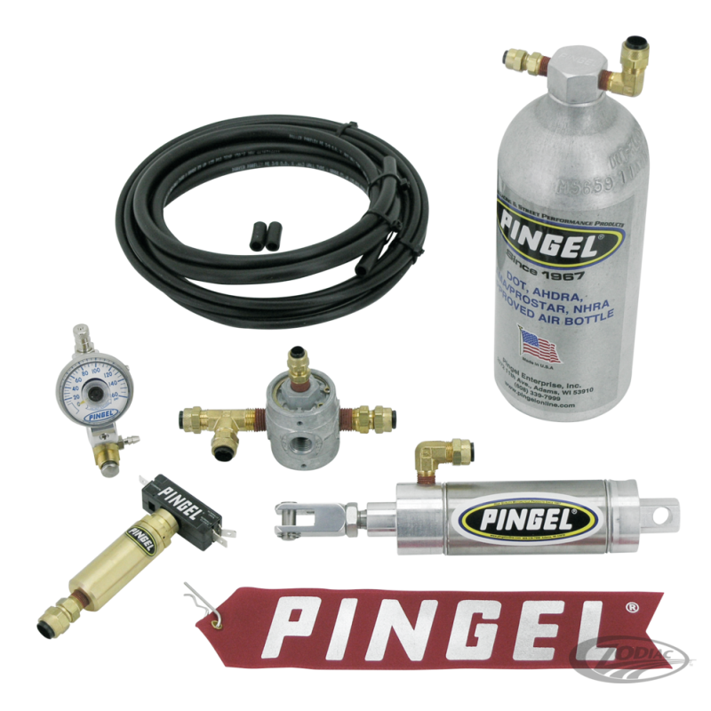 Si vous êtes un coureur sérieux en Dragster vous ne pouvez pas contourner cet accessoire pour gagner. Il n'y a pas plus rapide qu'un shifter! Ces Shifters Pingel Premium à air utilisent un cylindre de gros diamètre avec une soupape de décharge de gros diamètre également pour être utilisé sur les Dragsters Harley et est livré avec une fixation au guidon en 7/8" (22mm), bouteille d'air homologuée DOT et durits d'air livrées. Nous proposons également un kit avec bonbonne de 1" de diamètre, pression d'air et support de bouton, ces pièces ne sont pas incluses dans le kit Air Shifter. La bonbonne la jauge de pression d'air et le support doivent être commandés séparément.
