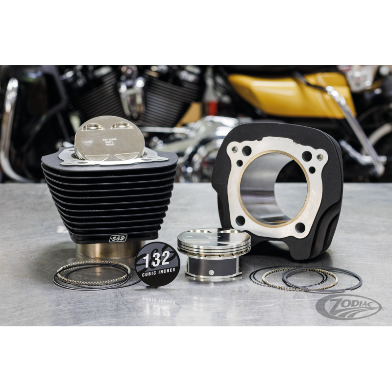 Ces kits d'alésage 4,32" (109.73mm) sont faciles à installer car aucun usinage du carter-moteur n'est requis. Les kits comprennent des pistons forgés, les segments, axes, circlips, des cylindres et les joints d'embase et culasse. Les kits 129CI (2.113cc) sont pour moteurs 107CI Milwaukee Eight avec course de 4,375". Les kits 132CI (2.147cc) sont pour moteurs 114CI et 117CI Milwaukee Eight avec course de 4,500".