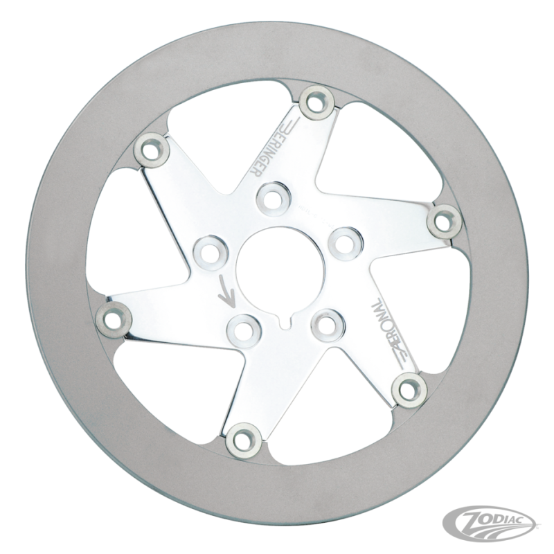 Beringer utilise de la fonte grise pour la piste de freinage, un matériau utilisé universellement par tous les fabricants de disques hautes performances. La surface externe de la piste en fonte est recouverte d'un aluminium plasma pour prevenir la rouille et pour permettre l'utilisation de plaquettes "sintered metal". Ce grain très fin de surface accroit la puissance de freinage jusqu'à 40% et est sujet à une usure très faible ce qui accroit la durée de vie. Un aluminium aviation est utilisé pour l'usinage des centres. Les disques "Aeronal" sont perforés et usinés sur une machine CNC et ont un centre en aluminium attaché avec 6 inserts au lieu des 12 inserts sur la version classique. Les disques ont le centre en finition chromée, polie ou noire anodisée. Il est recommandé d'utiliser ces disques avec des plaquettes "sintered" ou pour un freinage ultime d'utiliser les étriers Beringer. Ces disques ne sont pas compatibles avec les étriers d'origine.