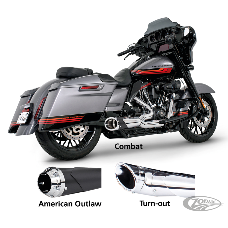 Pour Touring 2017 au présentNote: Tous les modèles européens 2021 et ultérieurs (Euro 5) nécessitent des éliminateurs ZPN 744444 pour le capteur O2 arrière et une reprogrammation avec Diag4Bike ou similaire pour désactiver le CEL (Check Engine Light) et les DTC (Digital Trouble Code) associés, Noir avec embout Turn-out sculpté