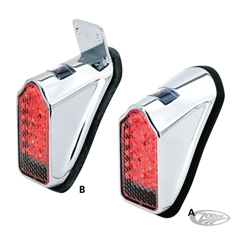 Ces feux Tombstone sont une copie rétrécie de ceux tuilisés de 1947-1954. Ils font juste 4 1/2" de haut et 2 1/2" de large et ont des LED brillantes au lieu des ampoules classiques. Les feux mini Tombstone sont vraiment supers pour tous les montages custom. Et pour couronner le tout ces feux sont homologués avec leur lentille gravée CEE.
