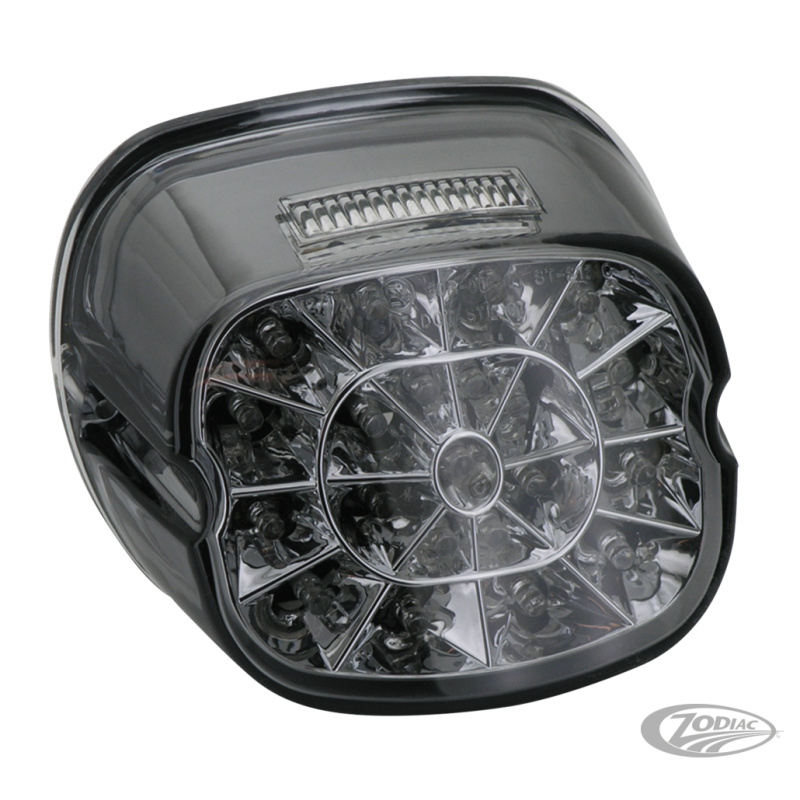 Ces feux "toile d'Araignée" sont homologués CEE et ont 20 LEDs lumineuses brillantes 20 LED rouges pour les fonctions de freinage et feux arrière et de 5 LED pour l'éclairage de plaque d'immatriculation. Disponible pour une utilisation avec la plaque d'immatriculation en haut ou en bas. Ils sont pré-câblés et comprennent deux connecteurs. L'un est un style droit pour raccord d'ampoule comme sur certains modèles 1999 et tous les 2000-2003, l'autre est pour 2004 au présent et se branche directement sur le connecteur d'origine. Ils vont sur les 2000 au présent Touring, 2000 FXR, 2000 au présent Softail, 1999 FXDS, 2000-2017 Dyna (sauf 2009 au présent FXDB, FXDFSE et FXDWG) et 2000 au présent Sportster (sauf 2007 au présent XL 1200 N, 2009 au présent XL 883 N, 2010 au présent XL 1200 X et 2008 au présent XR 1200).