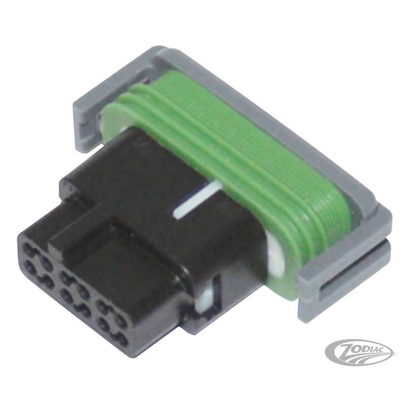 Kit complet comprenant toutes les pièces nécessaires à la construction d'une prise connecteur compteur ou Tri-Bar, comme sur les Sportster 2008 au présent, Dyna 2005-2017, Softail 2005 au présent et 2004 au présent Touring. Comprend un boîtier de prise à 12 voies (OEM 72130-04), une broche de joint (OEM 72189-04), des cosses (OEM 74196-04) et un verrou (OEM 74197-04).