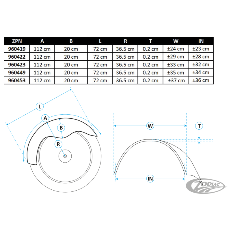 Garde-boue Hardtail arrière sans découpe, 14 1/4" de large
