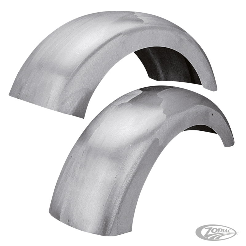 Gardes boue avec un super look bien lisse et construits en acier épais avec des côtés arrondis. C'est l'idéal pour tout customiseur puisque livré non percé. Ces gardes boue ont deux tunnels en acier pour guider vos fils électriques et rigidifier votre garde-boue. Ils couvrent la roue sur 160° et ont un rayon de 14 1/4" (36cm). Design assorti aux Ground-Pounder avants de ce catalogue.