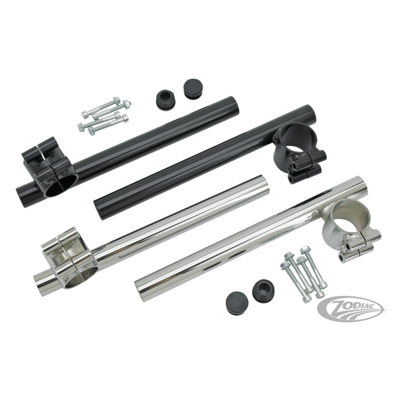 Ces guidons barcelets se montent sur les tubes de fourche entre les Tés pour donner le look Café racer. Ils existent en finition chromée ou en noir pour les fourches de 39mm et 41mm. Vendus en jeu gauche et droit.