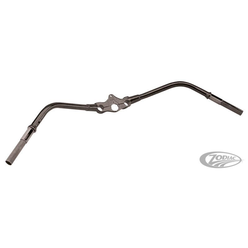 Ces guidons en acier sont des fidèles reproductions de ceux qui équipaient les fourches Springer 1936-1946 OEM. Ces guidons sont conçus pour utiliser des poignées de gaz et d'allumage avec câbles à l'intérieur, ils sont aussi percés et filetés pour recevoir les interrupteurs d'origine. Disponibles en finition epoxy noire ou chromée. Il existe 3 différents modèles, "Speedster", "Standard" et "Buckhorn". Les guidons style 1937-1948 vont sur les fourches "in-line" Springer comme utilisés sur les 1937-1945 Big Twin et 1940-1948 45CI (750cc) latéral ainsi que sur les fourches "Wide Springer" (large), que vous trouverez plus loin ailleurs dans le catalogue. Les guidons style 1946-1948 iront sur les fourches déportées 1946-1948 Big Twin. Sauf indication contraire les pièces de guidon vont sur tous les modèles 1937-1948.