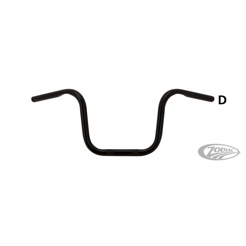 Le guidon Ape Hanger n'a jamais été absent. Ils sont fabriqués à partir de tubes de gros calibre, des coudes cintrés avec précision et ont un triple chromage ou noir époxy. Les empreintes permettent une installation facile de 1982 pour présent des commandes style Harley-Davidson. Le moletage donnent aux potences plus d'adhérence, la distance de centre à centre est indiquée en "G", alors vérifiez si cela correspond à votre application. Ces guidons ne conviennent pas pour les tirages électriques.
