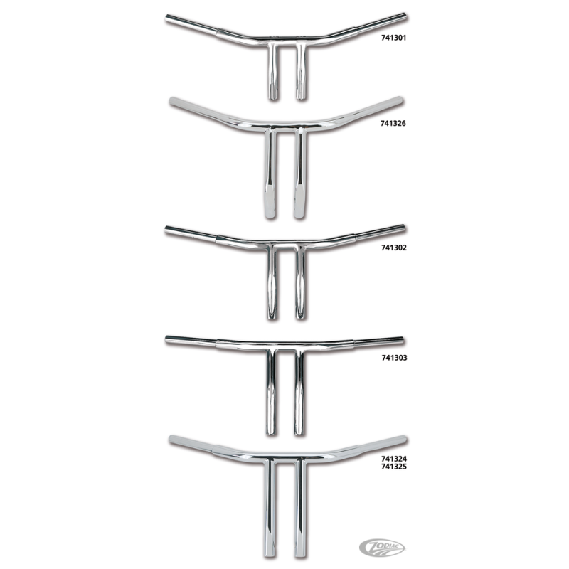 Ces guidons fabriqués aux USA ont un look mortel, un grand confort et sont de super qualité. Ils ont 1 1/4" de diamètre soit 25% de plus que ceux stock, ceci leur donne un look vraiment balaise que n'ont pas ceux de 1". La conception "step down" s'adapte à toutes les commandes et poignées standard ou aftermarket. Cers T-bars sont en vis de montage 1/2"-13 UNC.