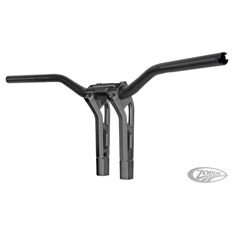 Guidon en aluminium de 1 1/4" (32mm) de diamètre, effilé à 1" du côté commande du guidon. Livré complet avec des risers en aluminium usiné avec une potence pour modèles Harley-Davidson avec fourches avant télescopiques et écartement de 3 1/2". Ces guidons sont prêts à être utilisés avec tirage électronique "Throttle-By-Wire" et également aussi pour tirage à câble ordinaire.Ils sont dotés de la finition OPS bicolore à texture exclusive de PM.