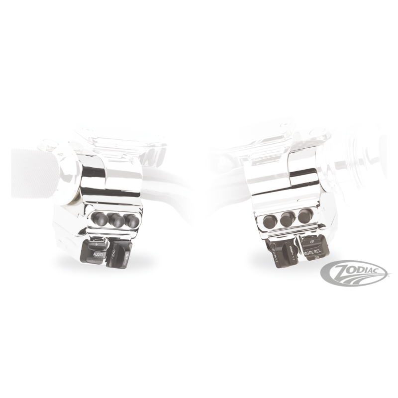 Ces commutateurs au guidon sont pour une utilisation avec frein et embrayage Contour Performance Machine. Ils utilisent les contacteur d'origine de stéréo et régulateur de vitesse pour une installation simple et une facilité d'utilisation. Disponible en finition polie, chrome ou noir.