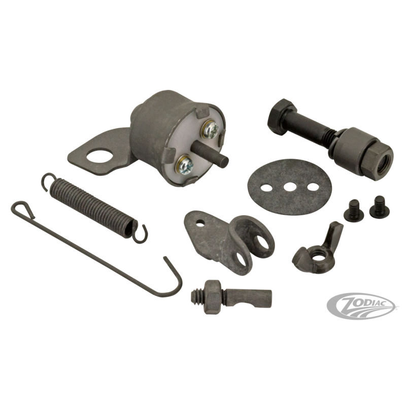 Le kit contacteur frein mécanique de type Replica. Le corps du commutateur est noir et les autres composants sont parkerisés. A tous Big Twin 1939-1957. Peut également être utilisé sur les modèles 1939-1952 45CI Solo et 1939-1950 Servicar lorsque vous utilisez ZPN 788729 fil de tirage.