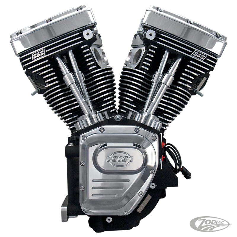 Les nouveaux moteurs Long Block T-Series S&S sont sans système de carburant et d'allumage. Parfait pour ceux qui ont déjà un allumage haute performance et le carburateur ou le corps de papillon. Les culases sont spécialement usinées pour s'adapter à une pipe de longuer stock, donc le filtre à air, le carburateur ou le corps du papillon qui correspondent à un moteur stock s'adaptera à votre nouveau moteur S&S. Vous pouvez donc utiliser sur votre nouveau moteur votre carbuarteur ou injection existants. Un carburateur ou corps de papillon qui correspond à un moteur stock s'adapteront au nouveau moteur S&S parce que les culasses sont spécialement usinés pour compenser l'augmentation de la longueur du cylindre pour qu'un collecteur stock s'adapte. Si vous avez installé un allumage ou un EFI tuner performance, vous pouvez l'utiliser. S&S lance également le moteur T124LC, qui a une compression légèrement plus faible et une durée de cames plus courte. Ce moteur est idéal pour les motos lourdes comme les baggers et les trikes. La basse compression rend le T124LC plus résistant au cliquettis et la détonation et il favorise une meilleure longévité du moteur ainsi que la fiabilité. Les moteurs T-Series sont disponibles en T111-111CI (1806cc), parfait moteur sport-touring, T124-124CI (2035cc), la performance Hot-Rod, avec cames 640 Easy Start et T124LC-124CI (2035CC) avec compression légèrement inférieure, et cames 585 Easy Start. Disponible en époxy aluminium et noir wrinkle. Tous les moteurs S&S T series disposent d'usinage spécial de la culasses pour monter collecteurs filtre et carbus type stock. Moteurs T-Series sont livrés avec une pompe à huile à haut débit S&S et le couvercle de came et cames Easy Start.