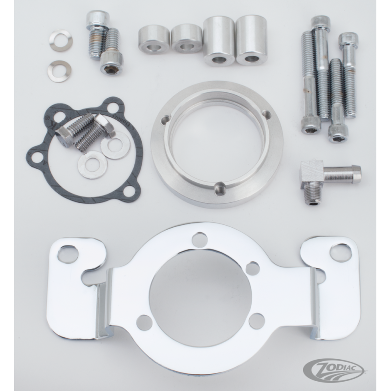 Depuis 1986, les Harley-Davidson ont des supports de filtre à air qui se montent directement sur les culasses. Si vous voulez monter un filtre à air custom ou un carburateur performance il vous faudra un de ces supports pour tenir le carburateur. Nous proposons une gamme complète de ces supports pour Sportster, Twin Cam et Big Twin.