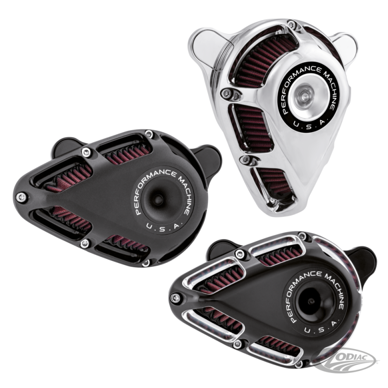 Le filtre à air JET PM a été formé de manière créative avec fonction ultime de sorte que vous pouvez avoir forme et fonction. Ses supports innovants du corps donnent une position horizontale soit une version verticale élégante - de sorte que vous décidez. Conception légère en aluminium, tubes reniflards internes pour éliminer les fuites d'huile et une installation facile en plus de son look superbe. Fabriqué aux Etats-Unis et disponible en chromé, noir Contrast Cut qui montre des coupes en aluminium usiné nus, ou deux tons noir Black Ops PM qui correspond parfaitement avec la finition moteur noir.