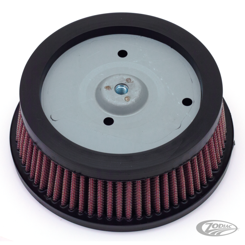 Élément filtrant, compatible avec les filtres à air Zodiac "Super Sucker" et Arlen Ness "Big Sucker Stage I" sur 1988-2022 XL Sportster, 1992-2000 Big Twin et 1999-2017 Twin Cam avec carburateur Mikuni CV ou injection de carburant Delphi commandée par câble