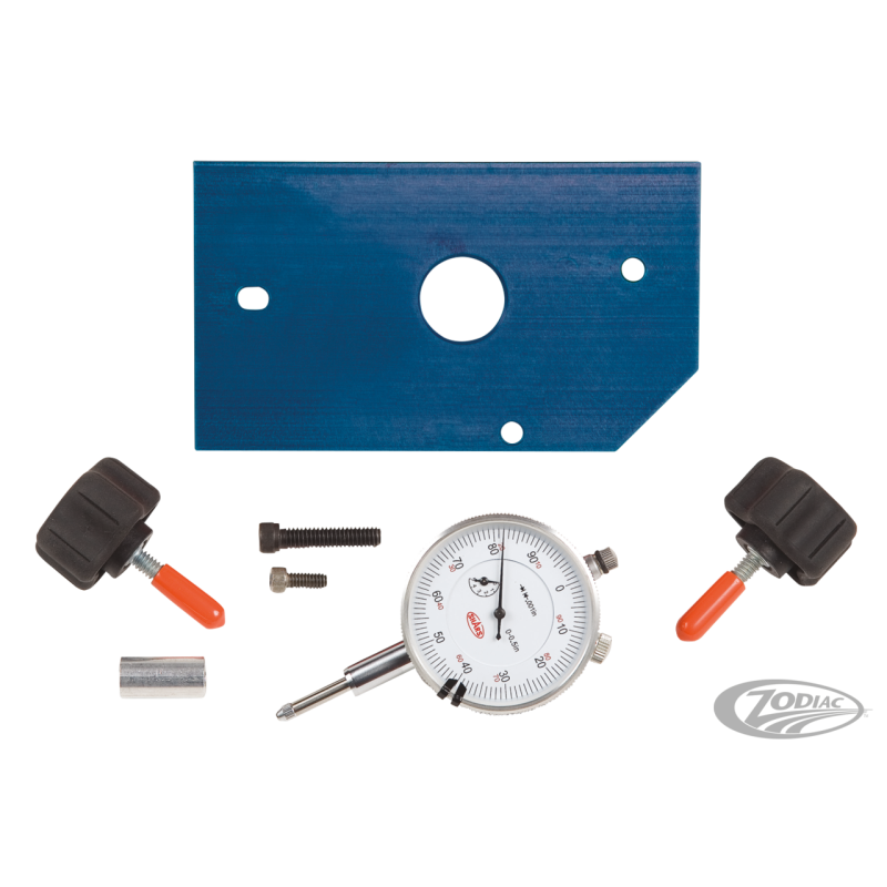 Vérifiez le saut ou faux-rond du vilebrequin avec moteur monté. Vérifie également le jeu sur les distributions par pignon sur moteurs Twin Cam. En utilisant un rotateur JIMS des pneus ZPN753615, vous pouvez éliminer la plupart tout du stress appliqué sur le vilo en tournant le moteur avec le démarreur électrique. Le kit contient des instructions, plaque de l'indicateur, le matériel nécessaire et d'un indicateur de jeu 1". Fonctionne sur 1970-1984 Shovelhead, 1984-1999 Evolution Big Twin et 1999-2017 Twin Cam.