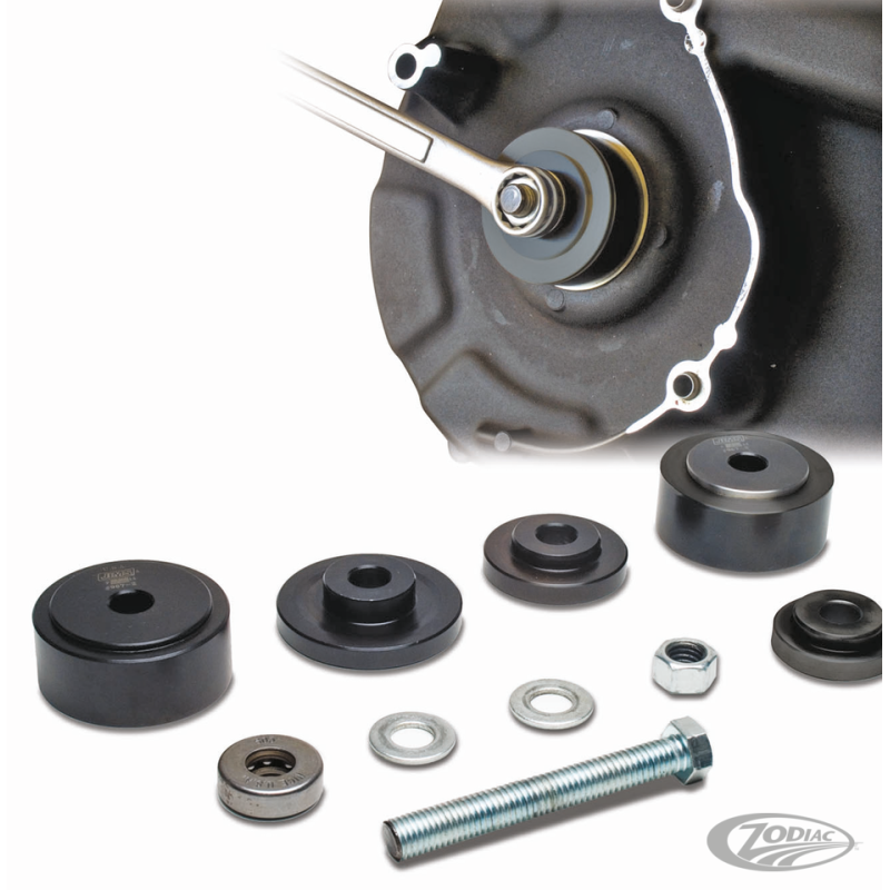 Conçu pour démonter et installer en toute sécurité le roulement de primaire interne ZPN233823 sans abimer le nouveau roulement. Ceci se fait en poussant sur le diamètre extérieur du roulement. Installe et retire aussi le spy de primaire interne. Pour ceux qui ont déjà l'outil 753620 ils peuvent commander les guides pour modèles après 2006.